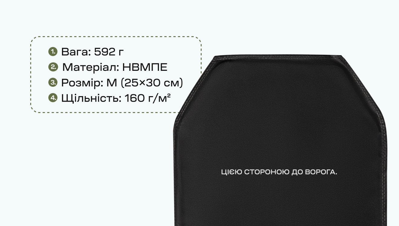 1. НВМПЕ щільністю 160 г/м². Ми використовуємо НВМПЕ високої щільності, водночас більшість виробників використовує щільність 100 г/м², економлячи на матеріалі. Саме щільність матеріалу впливає на здатність балістичного пакета витримувати уламки та кулі.