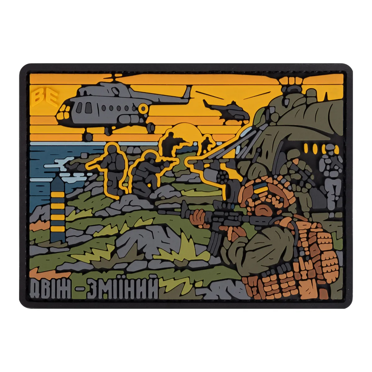 Пространство борьбы, отваги и патриотизма оживает на этом уникальном шевроне. Изображение украинских солдат, которые неуклонно ведут бой за маленький, но важный Остров Змеиный в Черном море, поражает своим величием.