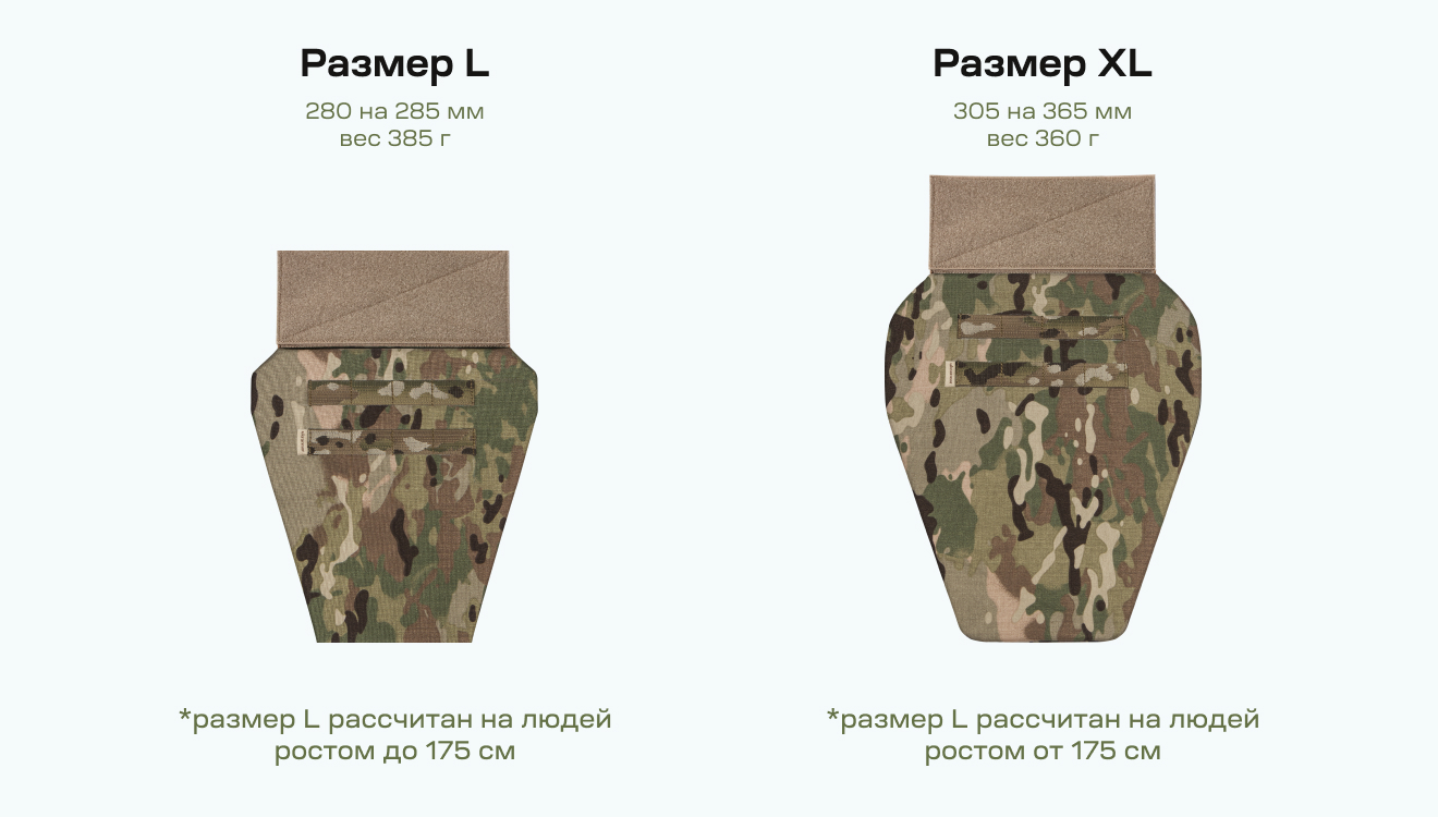 Противоосколочный фартук (чехол + баллистический пакет) в двух размерах L и XL. Как понять какой размер нужен именно вам - объясняем.