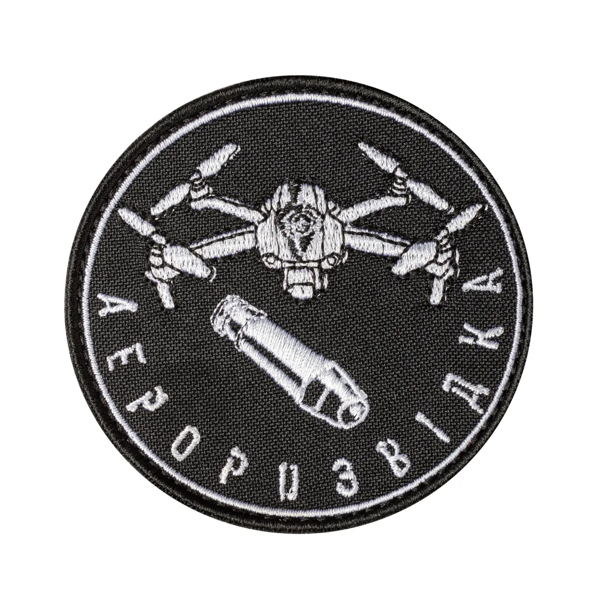 Шеврон «Аэроразведка» с дроном на липучке, 8.1 х 8.1 см. Черно-белый